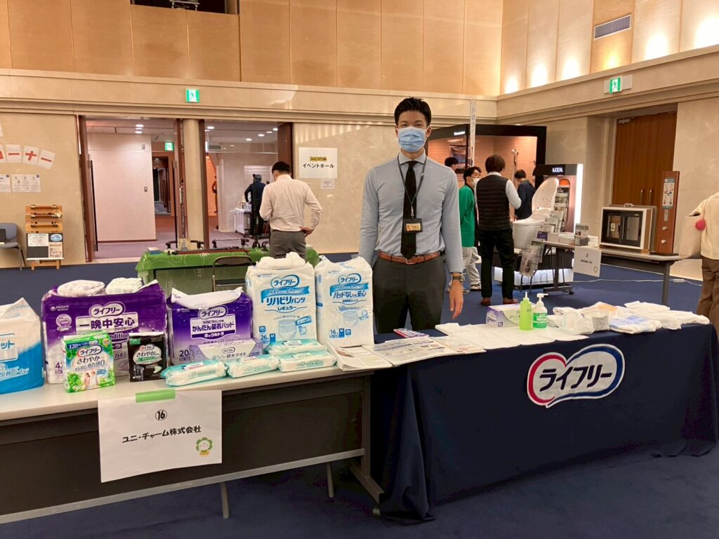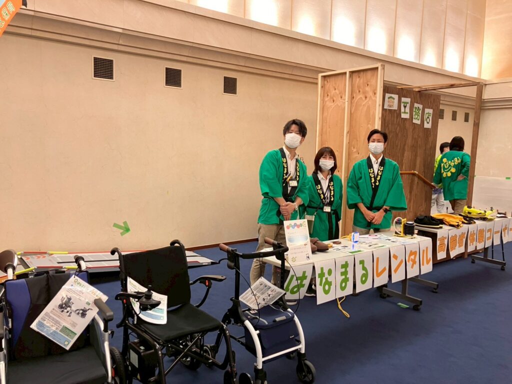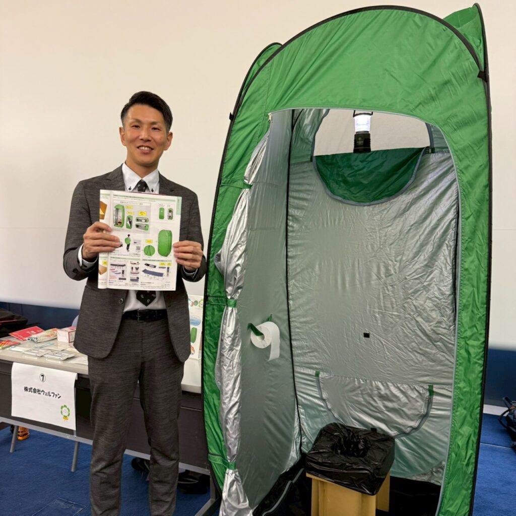 福祉用具卸の(株)ウェルファン様は、災害用テントとトイレに加え、必ず常備しておきたい厳選防災グッズをご展示いただきました。災害時テント個室があることの安心感。防災用品選びが難しいと感じる方も多いですが、手に取って見られると選びやすいですね。