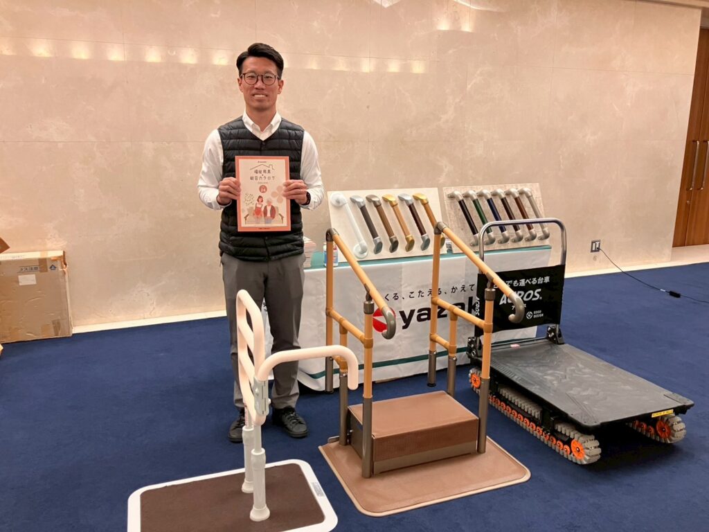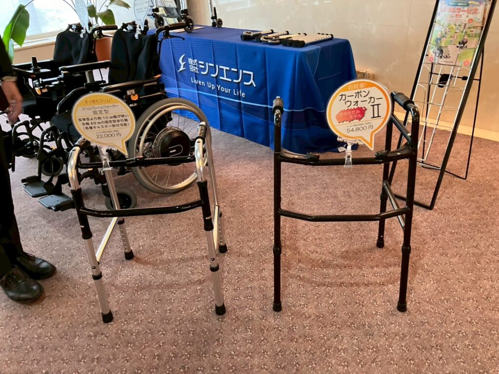 長時間運転可能なバッテリー搭載の車いすや、片手でも軽々持ち上げることのできるカーボンファイバー製折りたたみ式超軽量歩行器など、さらに進化した介護保険レンタル商品が充実。