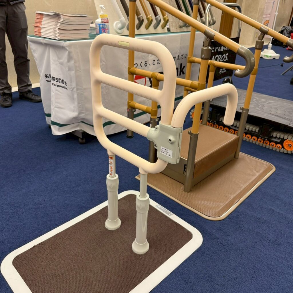 手すりといえば「たちあっぷ」というほど知名度のある、定番の手すりに加え、優しい色合いと手触りでベースがコンパクトなのに安定感抜群の「サムリング」を展示いただきました。省スペースで大きな助けになってくれる、頼れる存在です。